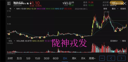 从日K来观察,小厢体突破,洗盘回踩,落脚点在10.30元以上能有效企稳迹象话,说明较强势,会有征程。