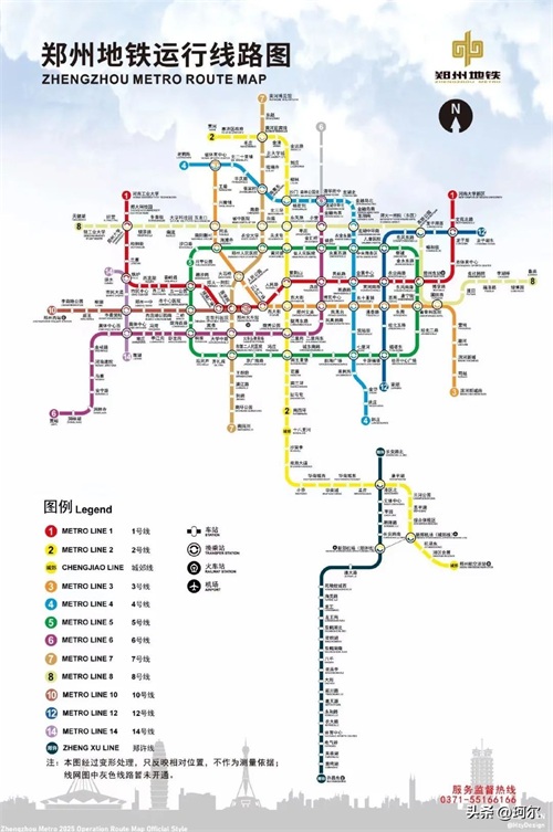 郑州地铁2025年运营线路示意图 ©HzyDesign 仅供参考