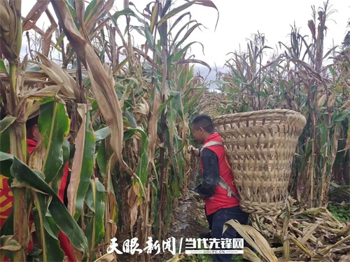 9月13日,在金沙县安洛乡小面积玉米超高产试种基地,聚集了不少村民和志愿者共同采收玉米,大家都满怀期待地等待专家的测产结果。