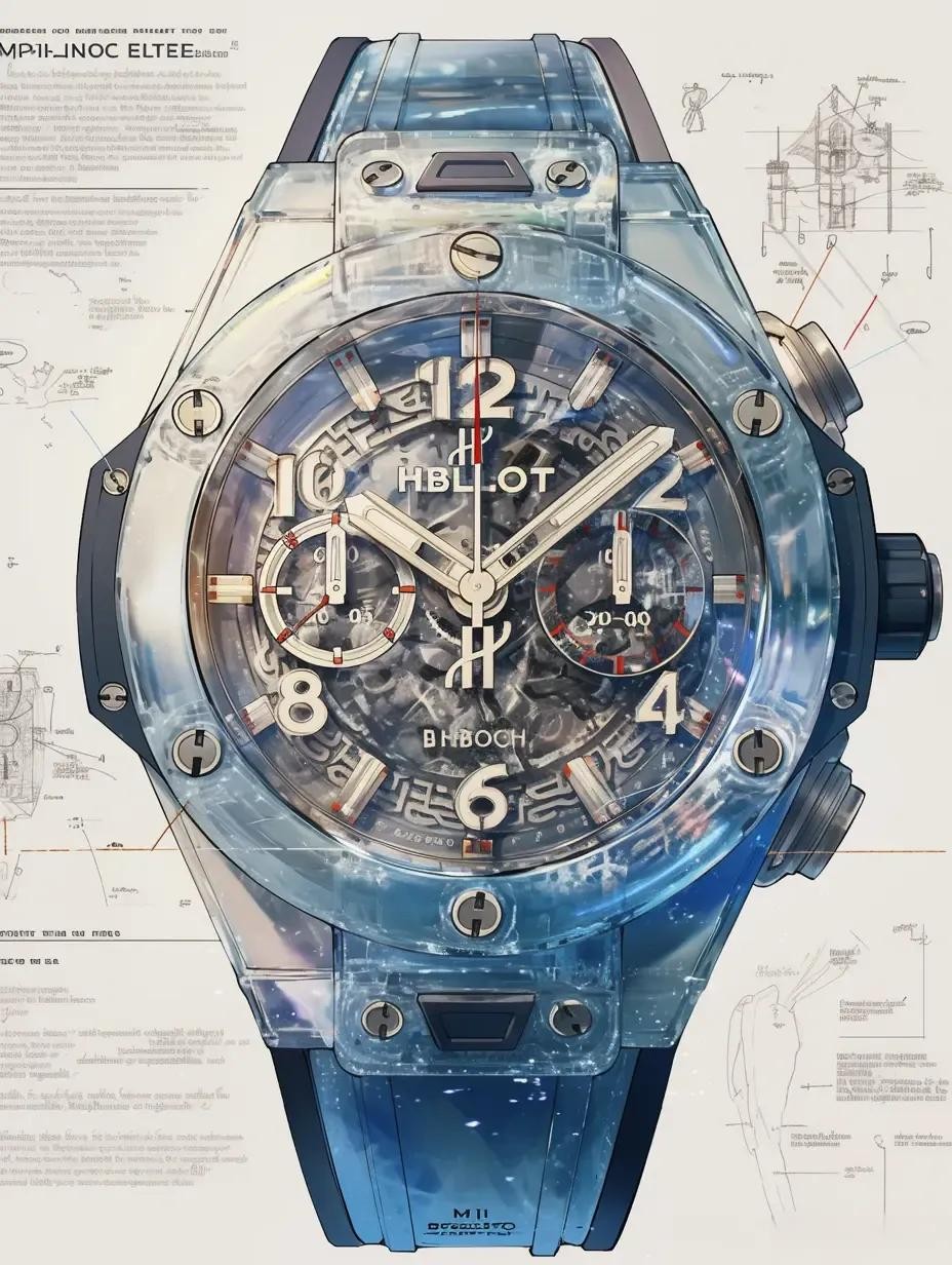 9.宇舶 Big Bang MP-11 蓝宝石水晶腕表:采用全透明蓝宝石水晶表壳,价格约350万美元,设计新颖,材质高科技。