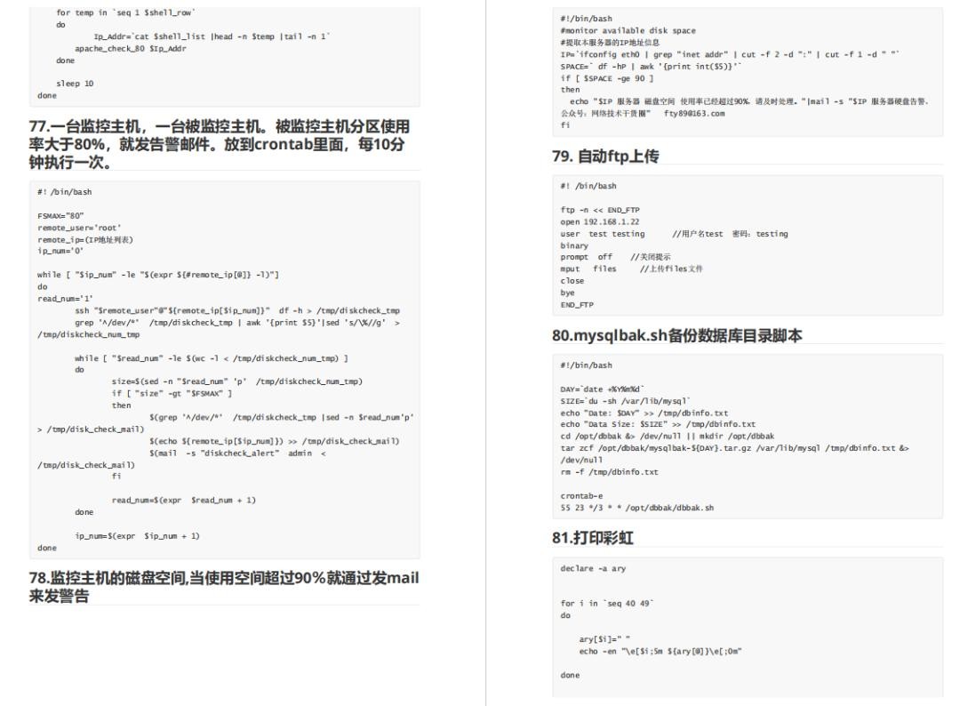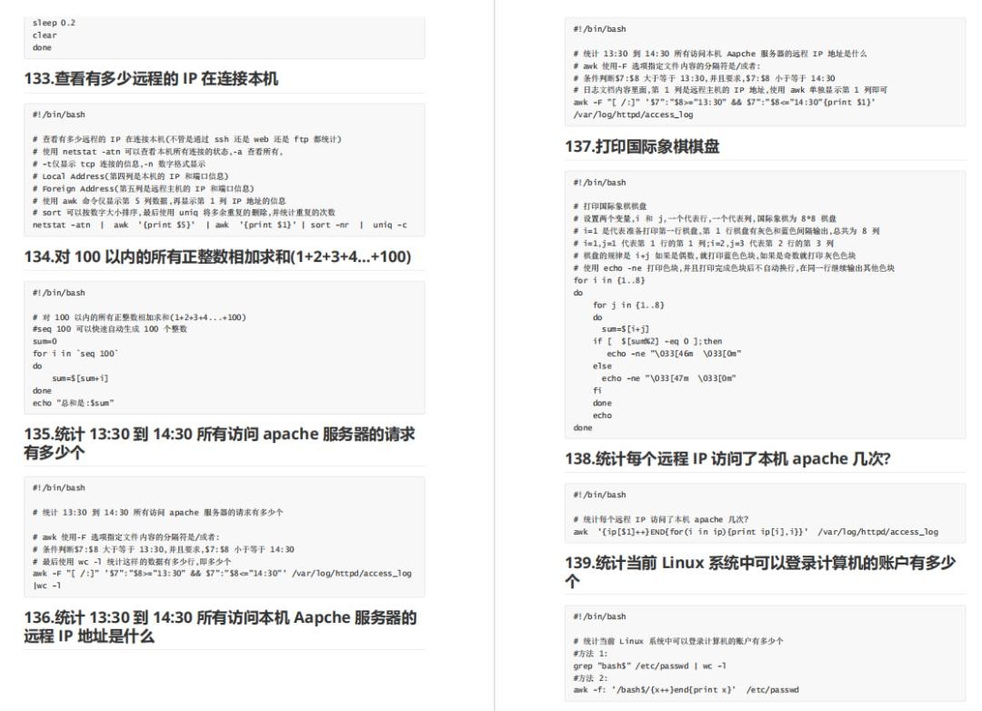 这249个Shell脚本共147页,目录清楚,一键搜索定位,代码清晰可复制,电子版可以随时拿来练习提升,是学习、提升、面试必备精品。