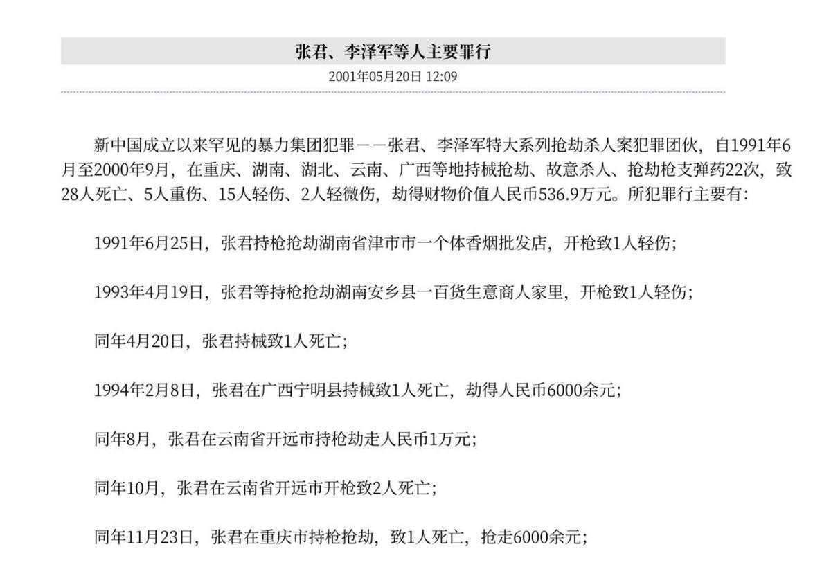 张君、李泽军等人主要罪行 来源:央视新闻2001-05-20