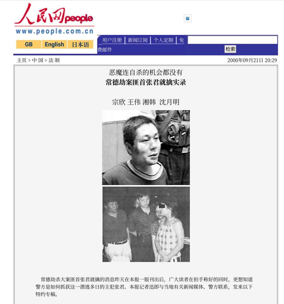 常德劫案匪首张君就擒实录 来源:人民网2000-09-21