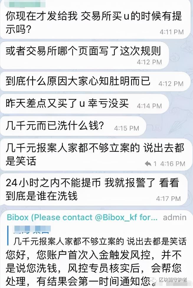 交易所以所谓“风控为由”,但大家都清楚,bibox交易所本身就是违法了,更不可能与国内执法机构合作,何来风控。