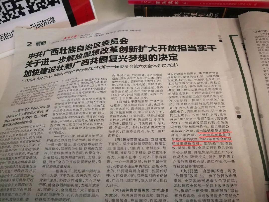 广西将在未来“推行高速公路差异化收费,适当降低桥隧比高的高速公路收费。2019年底前取消货车城市路桥收费,2020年年底前全面取消路桥收费。