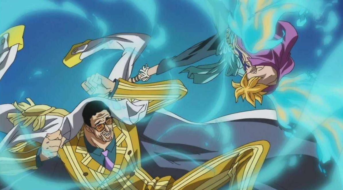 黄猿虽然一直被众多海迷调侃为放水大将,但是作为三大将的实力是不可否认的。而在顶上营救艾斯的时候,马尔科硬挨了黄猿的攻击却没有任何事情,并且面带微笑。随后黄猿也被马尔科踹了一脚。简单的交手之后,可见马尔科面对黄猿游刃有余,面对攻击均能简单化解,并且还以颜色。