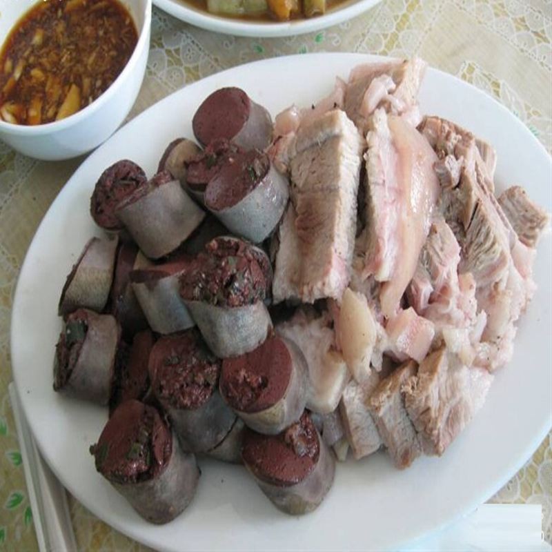 但是,我见过的各式各样的杀猪菜,都少不了两种食材,那便是酸菜和血肠。这两样也是我的最爱,特别喜欢酸菜配上猪肉的味道,酸菜的酸爽加上猪肉的鲜香,仿佛令杀猪菜充满了灵魂。