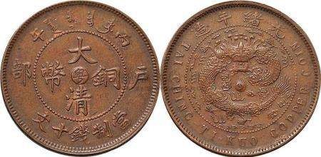 1903年,奉天省贵茂用十枚红铜铸币制作了光绪元宝,中央有满族“凤宝”,奉天铜币名声大,其存在相当罕见,充满铜光,目前流通的货币只有一枚用红铜铸币。
