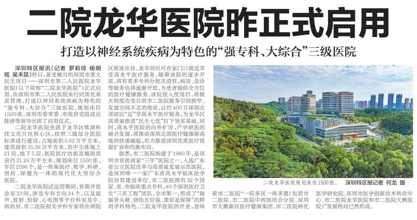 【深圳特区报】深圳市第二人民医院龙华医院正式启用