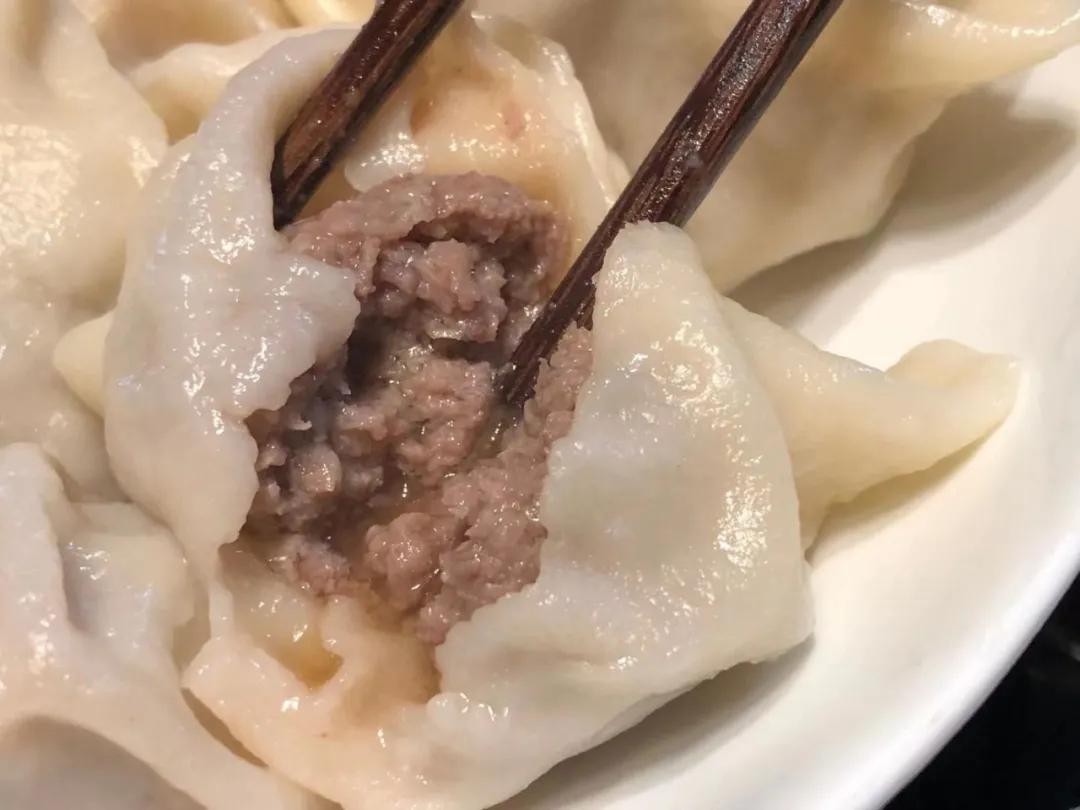 ▼ 饺子是重点。 猪肉+牛肉+大葱馅儿的,自己和面擀的皮,纯手工水饺就是这么巴适。