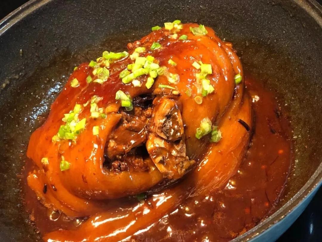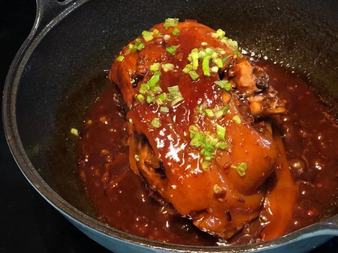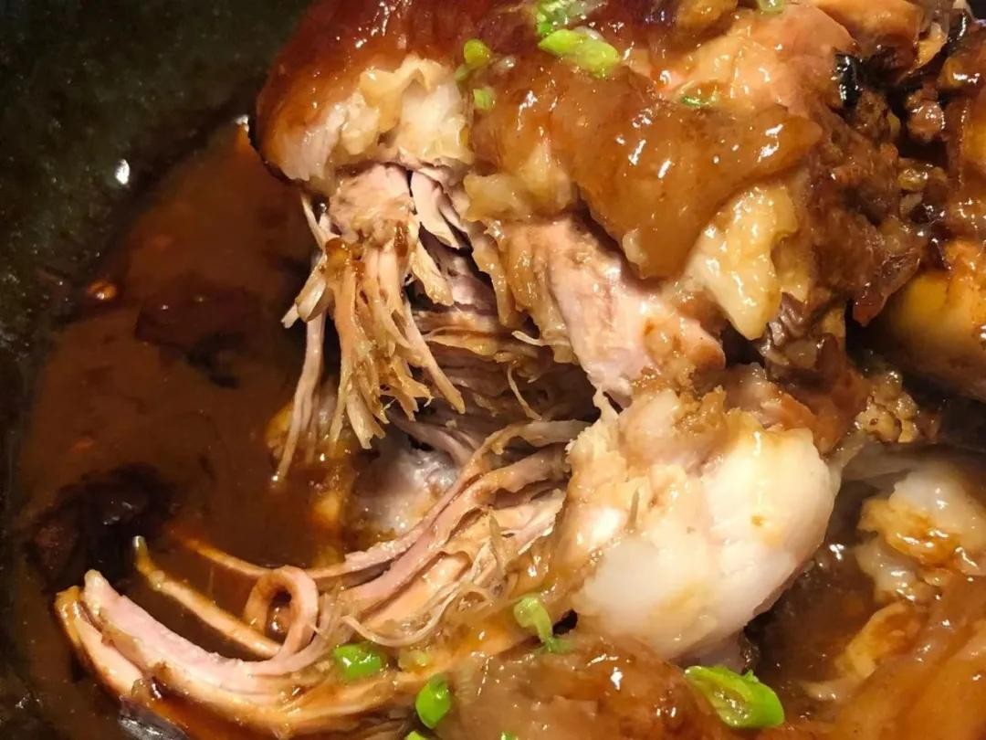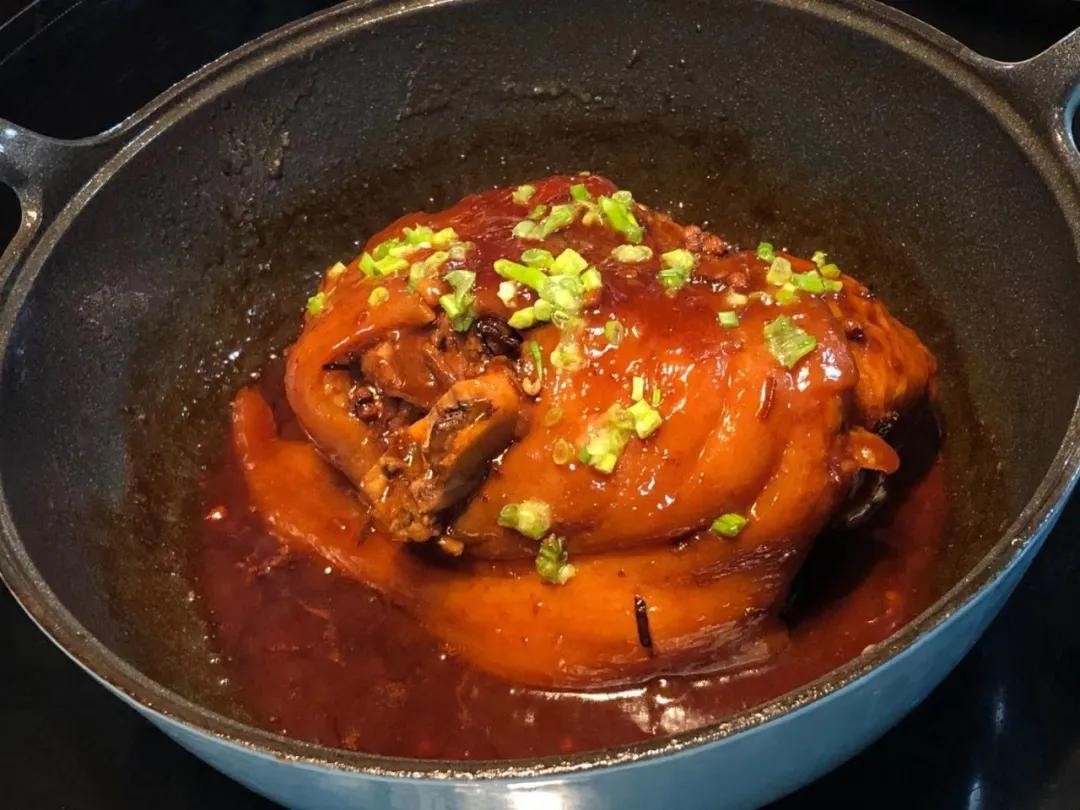 ▼ 红烧猪肘子。 实不相瞒,早晨9点钟就开始炖,没用高压锅,小火慢慢给它煨至软烂。最喜欢这样炖出来的肘子,格外香。 制作方法以前也写过,有需要的好友可以点蓝色字回顾:红烧猪肘子这样做,皮滑肉香,软烂脱骨,真的是百吃不腻