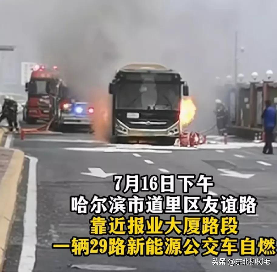 【哈尔滨市道里区一辆29路新能源公交车突发自燃】7月16日下午一点多,哈尔滨市道里区友谊路靠近报业大厦路段,一辆29路新能源公交车突发自燃,据现场目击者介绍,事发时该路段正值周日车流高峰时段,道路上行驶的车辆较多。现场有一位女士受伤,有人目睹现场灭火称“电瓶着火不敢呲水”,消防队员随后赶到现场将火扑灭。目前,事故具体原因正在进一步调查中。