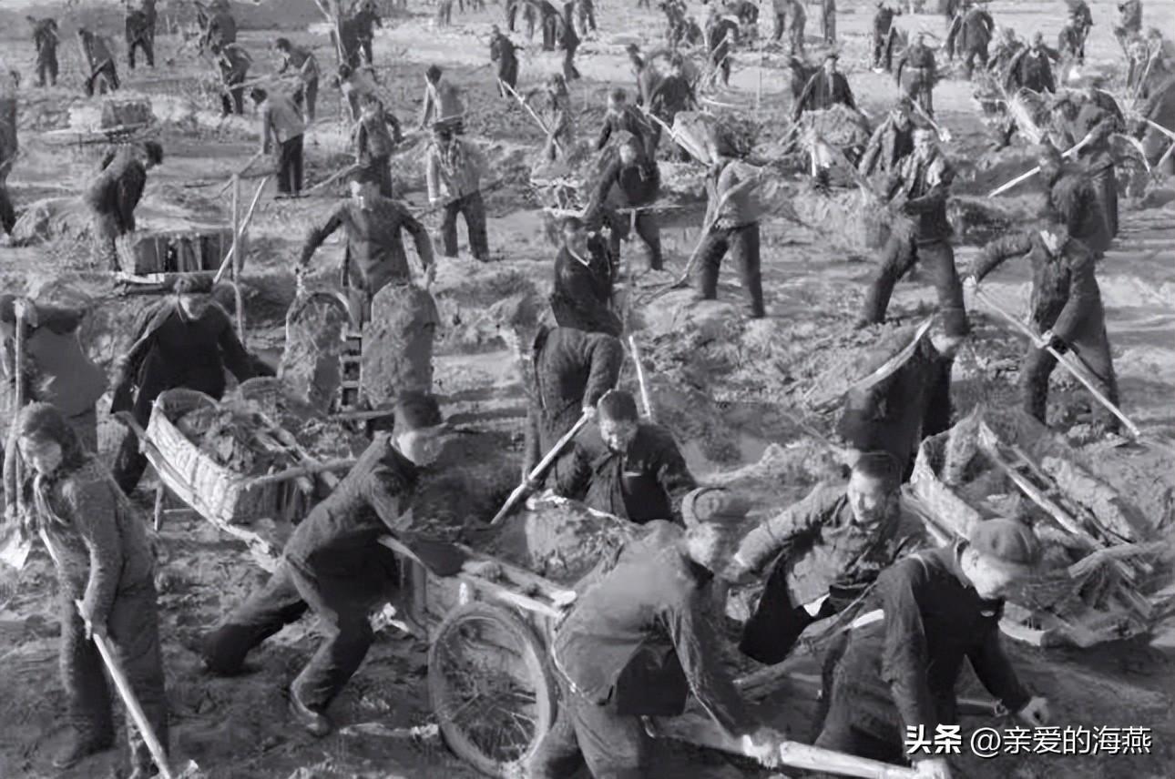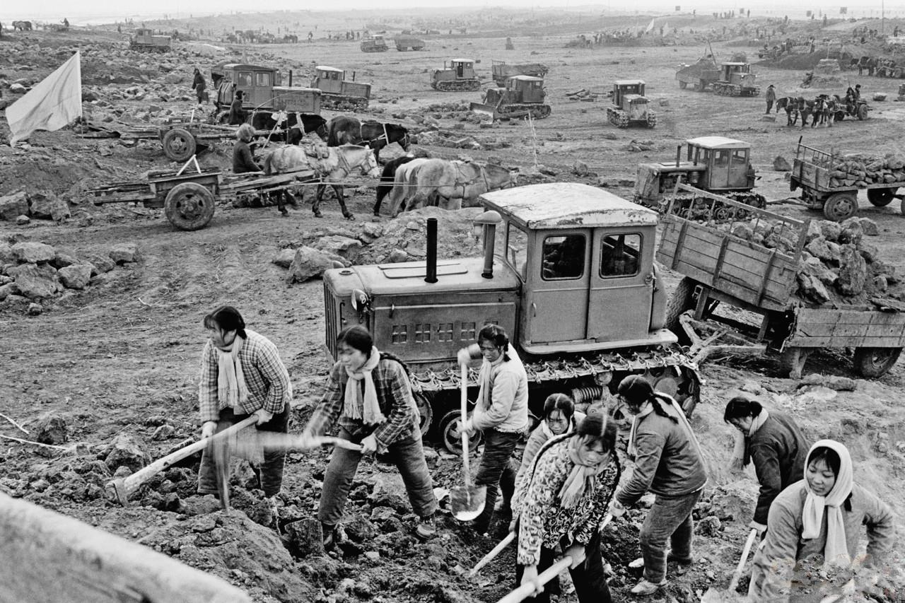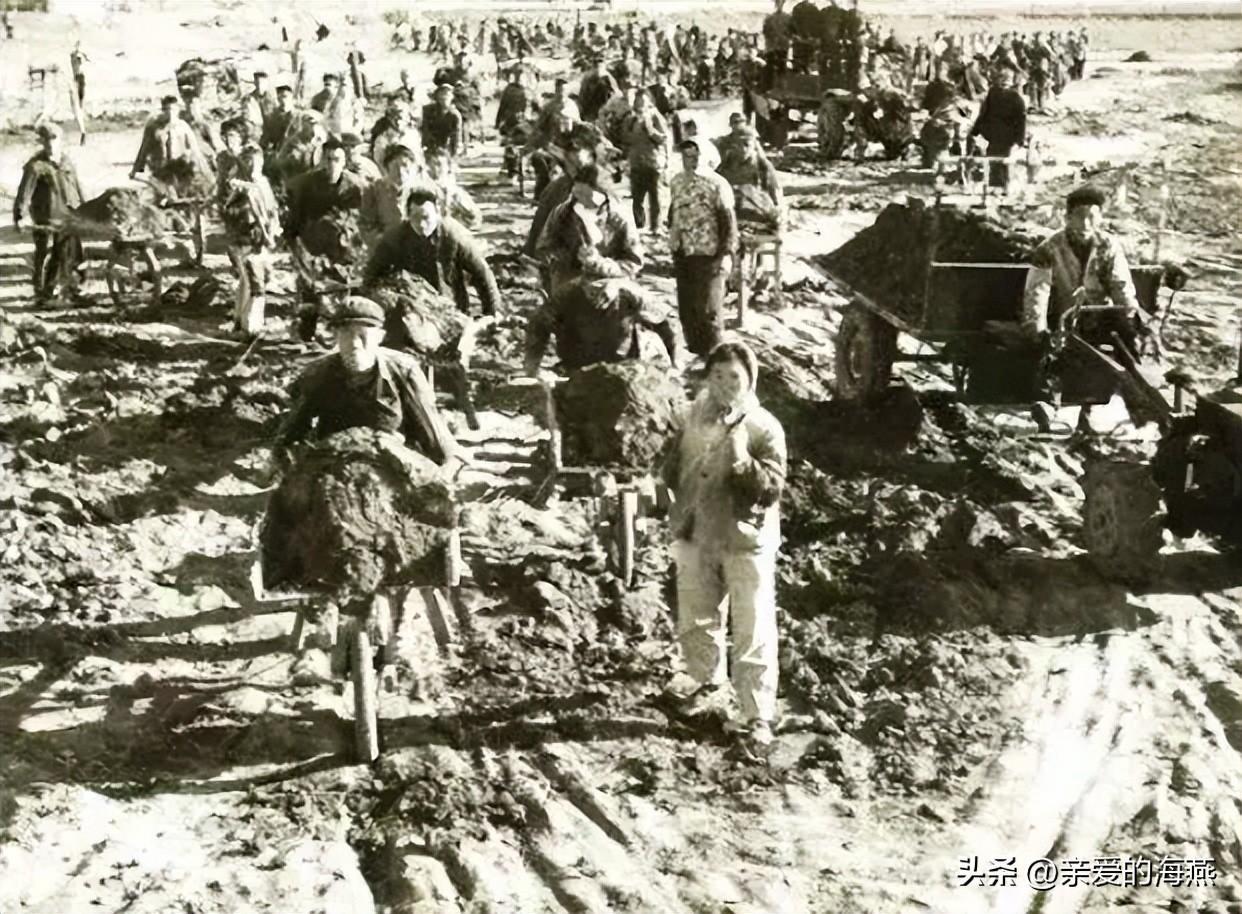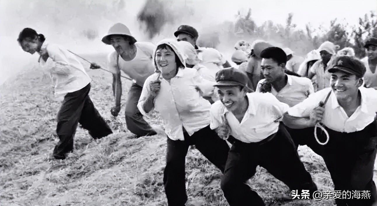 这是一群知识青年在“战天斗地、不怕天寒地冻”的号召下,不怕苦不怕累大家齐心参与农村农田的基础设施建设当中,