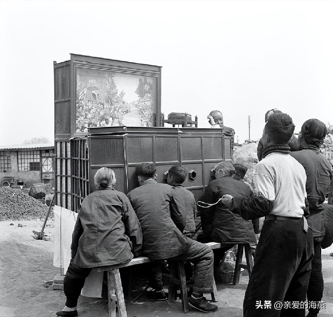人们在看拉洋片,拉洋片是中国民间一项传统艺术