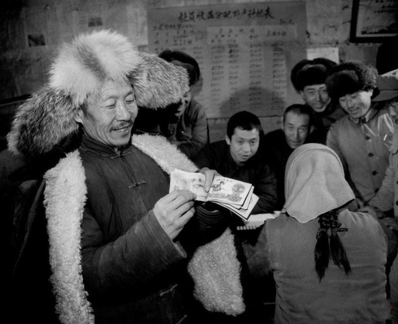 在一个农村生产队,那张照片,应该是分红,不是奖金,农村集体的年终结算分红。那时候没有奖金,只有奖状,最多加条毛巾或者一个搪瓷水杯,看到这些照片,给人一种幸福感。当时十元人民币才是大团结
