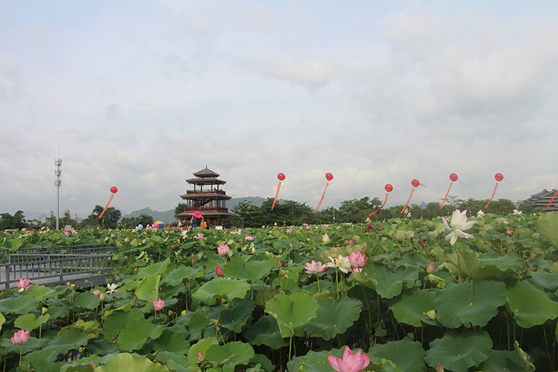 荷美覃塘景区,因其荷花种植规模大,种植品种多,花期长,配套设施完善而吸引众多游客前来游玩。