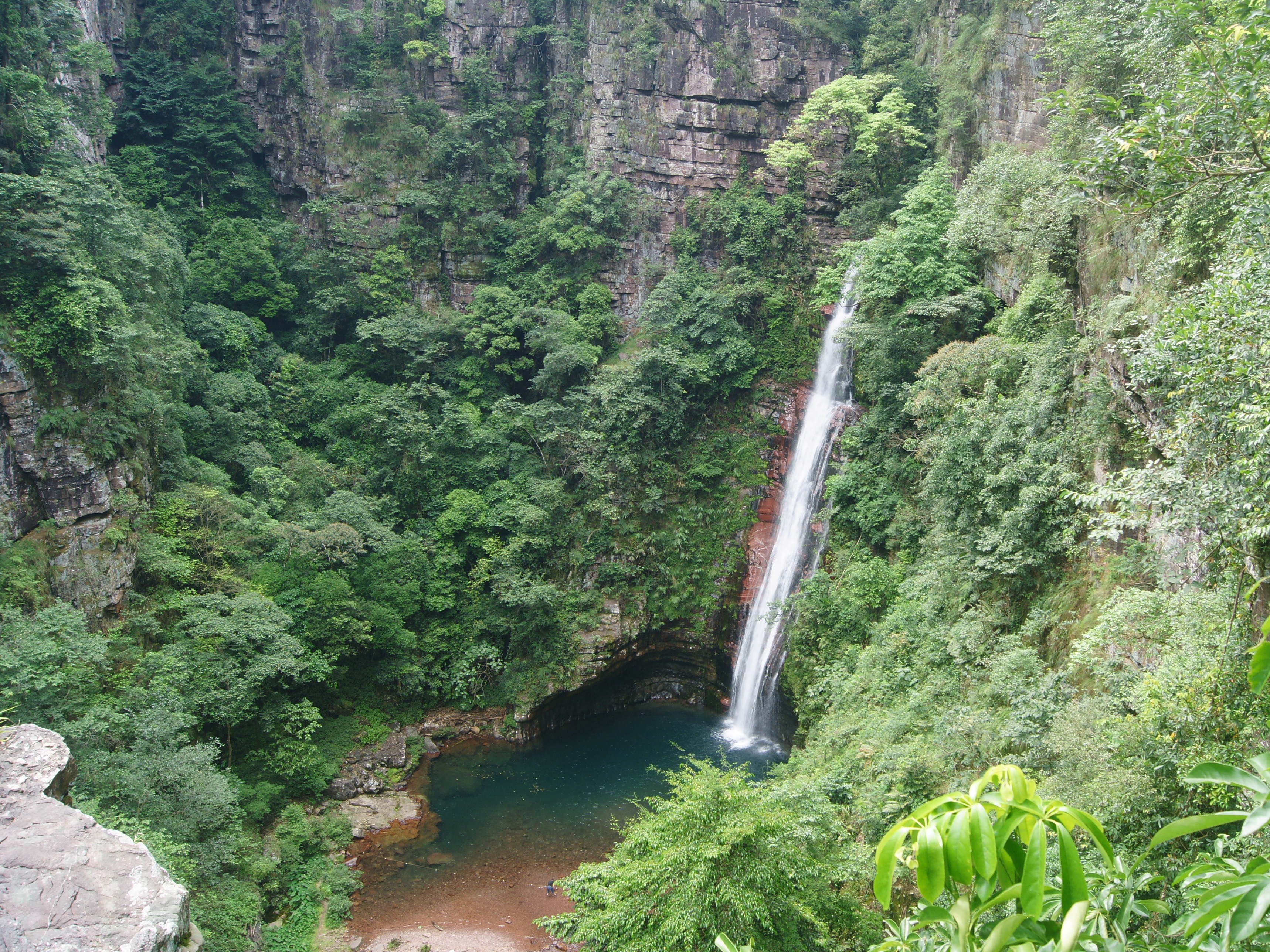 仙女浴池:位于仙人谷中下部,直径3米左右,深度5米左右,山泉瀑布凌空喧腾而下,似龙王喷珠吐玉,水质清澈甘爽,凉爽宜人。