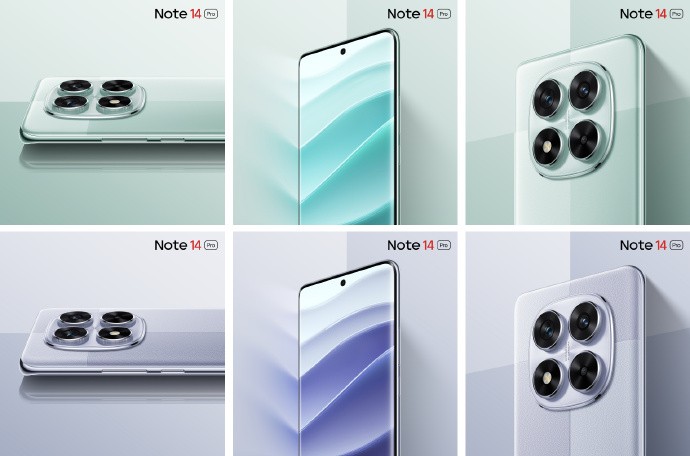 官方渲染图显示,Redmi Note 14系列手机拥有暮光紫、幻影青、镜瓷白等配色,机身背部采用椭圆形居中镜头模组。Redmi Note 14系列手机的采用曲面边框、四曲背部设计,握持感更加舒适。