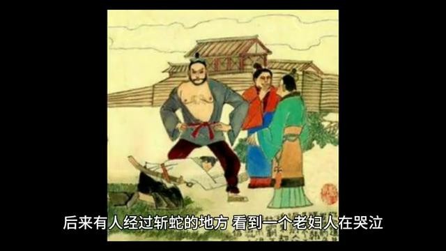 后来有人经过斩蛇的地方看到一个老妇人在哭泣,问她为什么哭?老妇人说:我儿子是白帝子,变成蛇横在路上被赤帝子杀了。人们认为老妇人是在说谎,但刘邦知道后却十分高兴,认为自己就是赤帝子,起义后便以"赤帝子"自居。