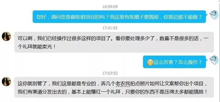 这些渠道商已经形成清晰的产业链,从文案撰写到渠道销售,全套服务。并且大包大揽地承诺:“只要数量积压不多,一个礼拜就能卖光!”