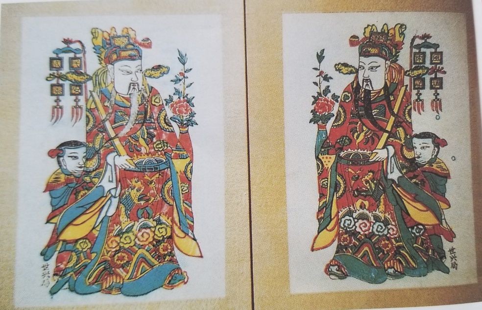 陕西凤翔清代旧版世兴局重刻的木版年画福星,代表百姓祈求风调雨顺,国泰民安