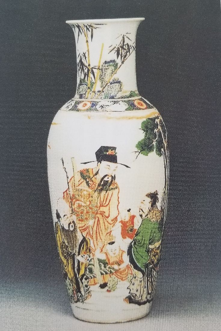 旧时民俗年画、套色版画、陶瓷和玉石雕刻所呈现的福神,形象多为吏部天官模样,一派雍容华贵的神气,身穿朝服,龙绣玉带,手执大如意,五绺长须,和颜悦色,有些状似大财主(员外郎)。这是受历来世俗观念所影响,误以为有财便有福。