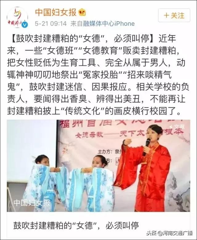 去年,中国妇女报曾公开谴责“女德”,今年“女德”班又再现……