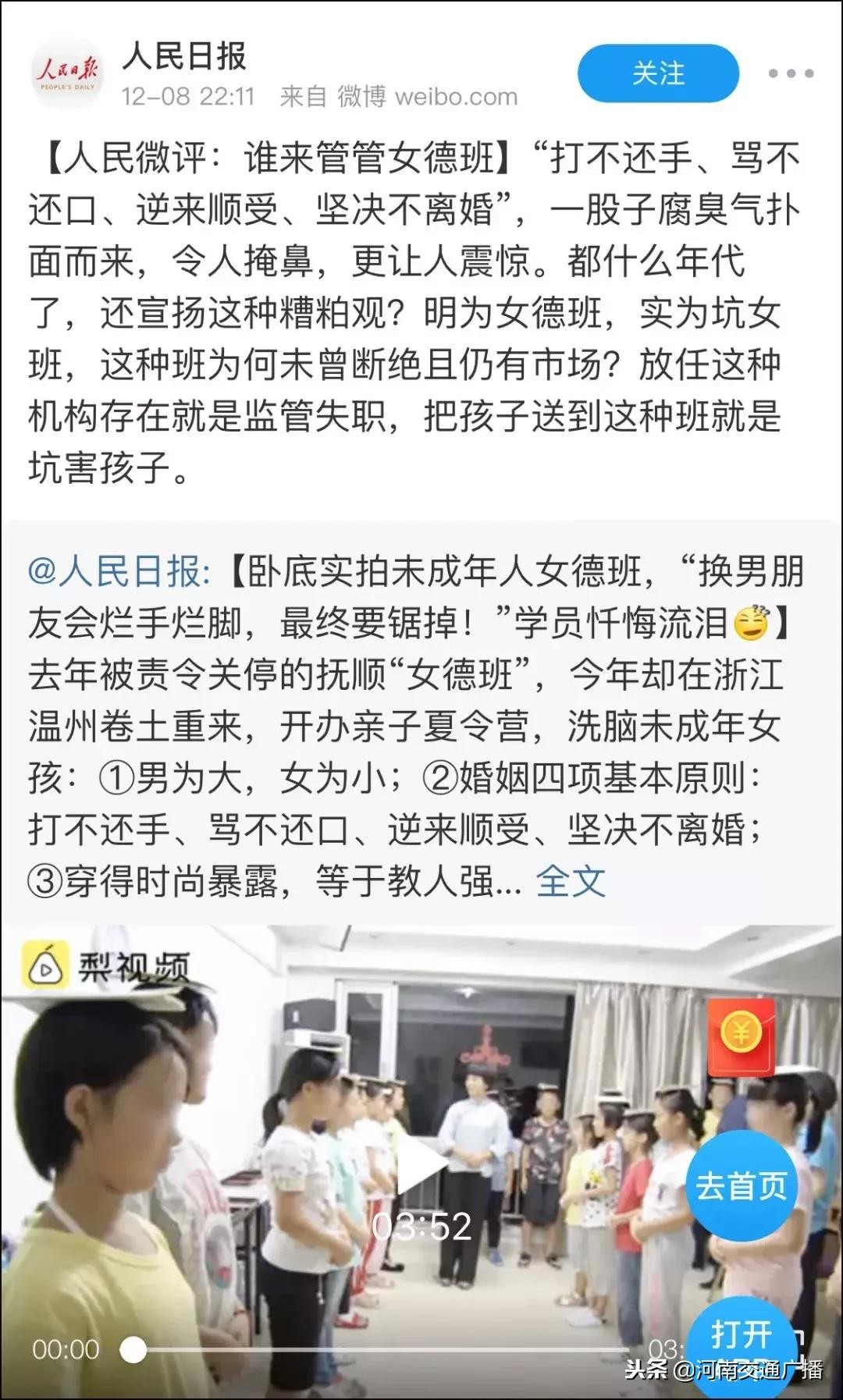 昨日,人民发表微评:谁来管管女德班