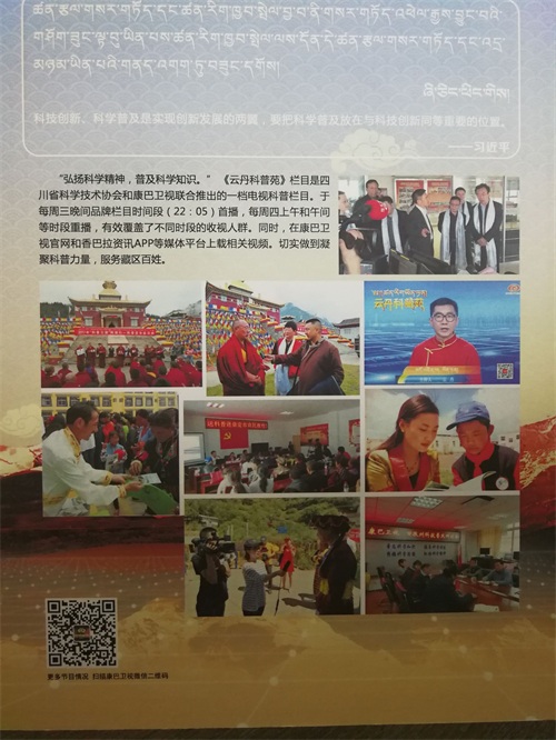 2017年,由康巴卫视与四川省科协合作联办的《云丹科普苑》52期栏目,目前已经汇编成册,并完成了DVD音像制品制作。几年来,该栏目深入雪域高原,走遍中国藏区,拍摄录制播出了大量农牧民群众关注喜欢的生产生活类科普节目,为藏区精准扶贫和经济发展做出了积极贡献。