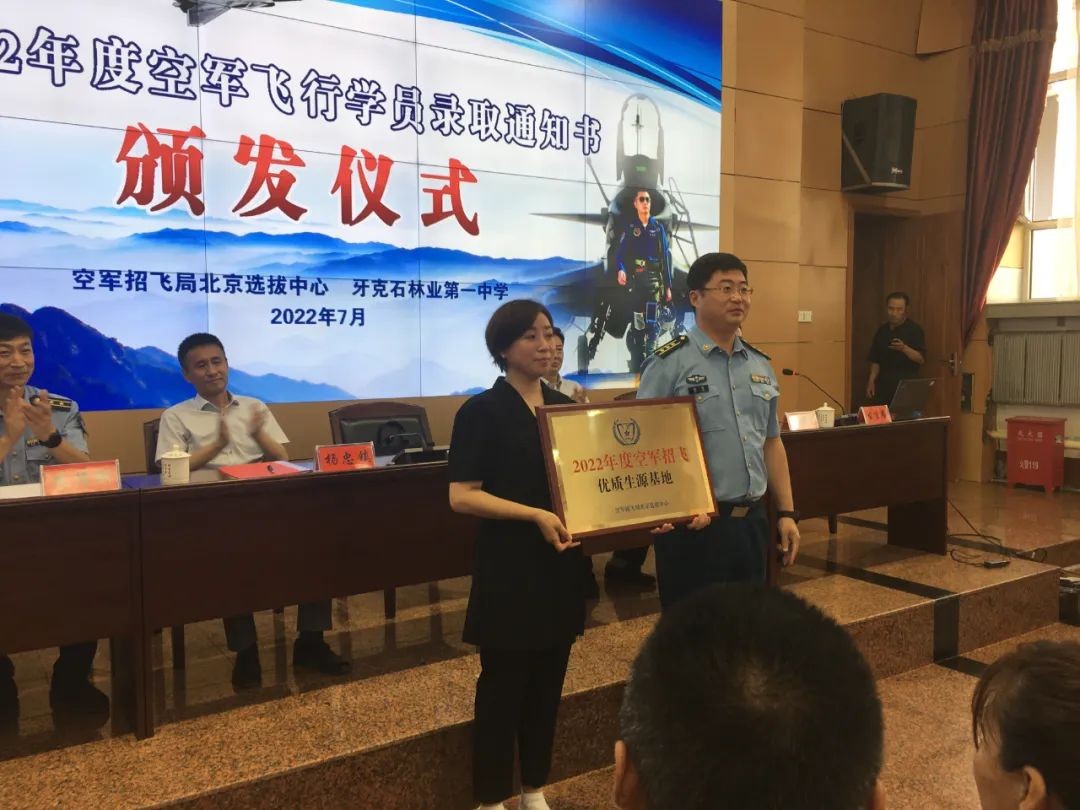 2022年,空军招飞工作在内蒙古自治区共录取39名空军飞行学员,呼伦贝尔市共录取三名,其中牙克石林业一中录取两名,单校录取数量在全区高中学校并列第一。