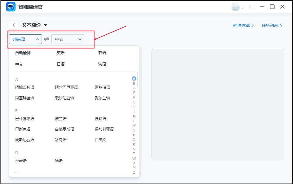 想要把越南语翻译成中文,通过【智能翻译官】中的【文本翻译】功能就能轻松实现,在保证翻译速度快的同时还相当注重翻译的质量。