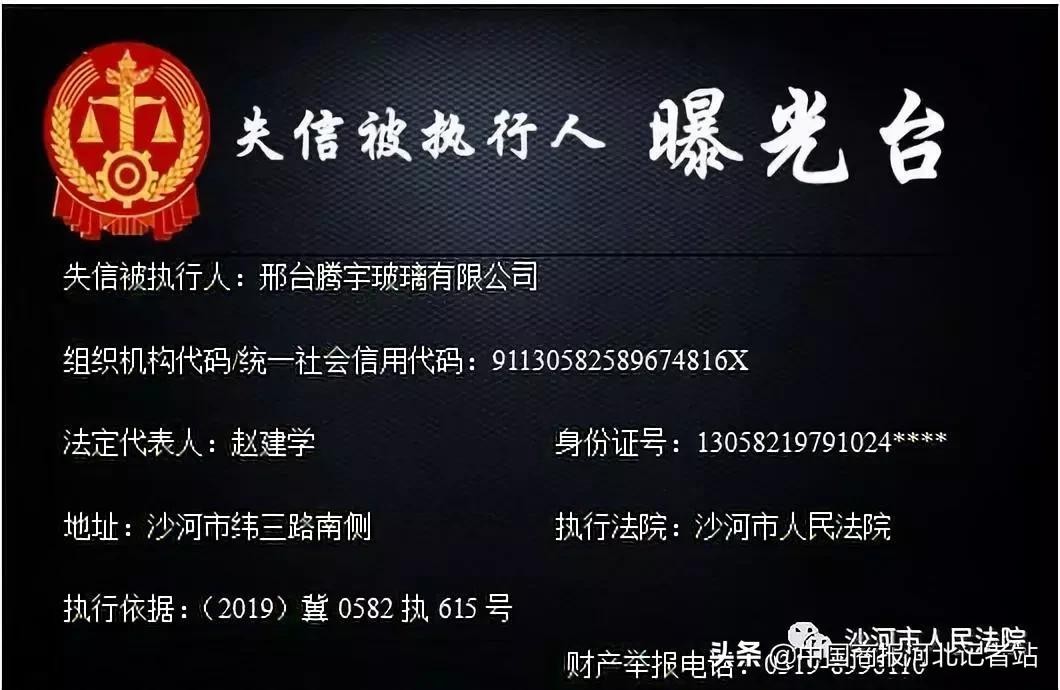 为加大失信惩戒力度,推动“法治沙河、诚信沙河”建设,根据《中华人民共和国民事诉讼法》、《最高人民法院关于公布失信被执行人名单信息的若干规定》、《最高人民法院关于限制被执行人高消费的若干规定》,沙河市人民法院决定公开失信被执行人信息,敦促失信被执行人履行判决义务。法院将对未能履行判决义务的失信被执行人采取搜查、拘留、罚款、追究拒执罪等多种强制措施,对赖账行为一追到底。财产举报电话:0319-8996110。
