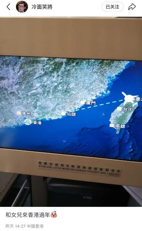 而从郭爸IP来看,他目前在中国香港。其实,早在昨日郭爸就有发文透露称今年不在台北过年,而是跟着大女儿郭碧婷到香港婆家过年。