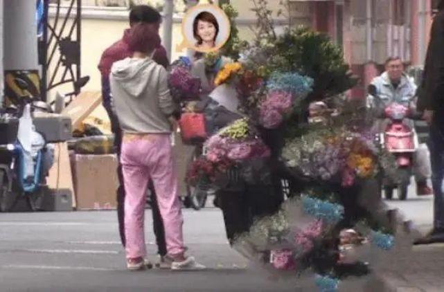 两人散步途中看到路边有卖花的,马伊琍还停下脚步仔细挑选,该男子就在一旁耐心等候,看来两人的心情还是十分不错的。