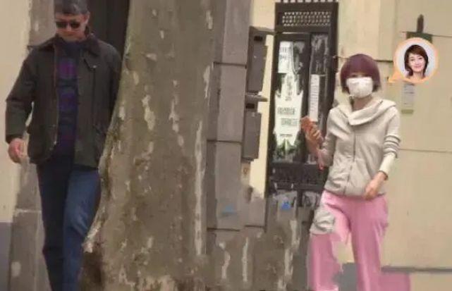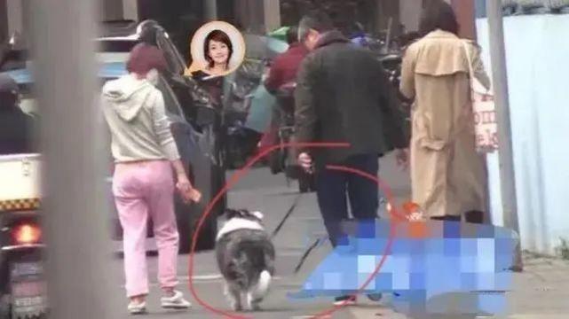 从照片中可以看到,马伊琍与一名中年男子现身街头,两人一前一后地在街上遛狗,看着很悠闲。