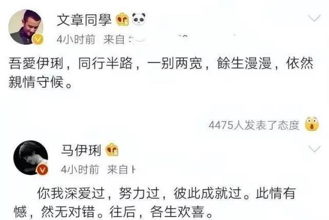 2014年3月31日凌晨文章发布声明称自己咎由自取,不知道马伊琍经过怎样的纠结,最后为了孩子还是妥协了,一句:恋爱虽易,婚姻不易,且行且珍惜,尽是无奈和心酸。