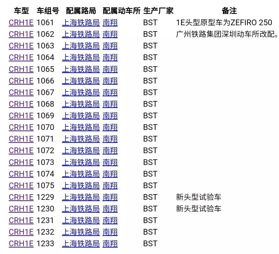 CRH1E后期出现了新头型,有点类似于萌地铁的头型。目前全路20列CRH1E均配属上海铁路局。