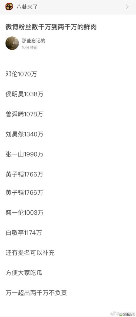 很快,神通广大的网友开始罗列出来粉丝一千万到两千万的男明星!邓伦张一山刘昊然白敬亭等小鲜肉纷纷上榜!