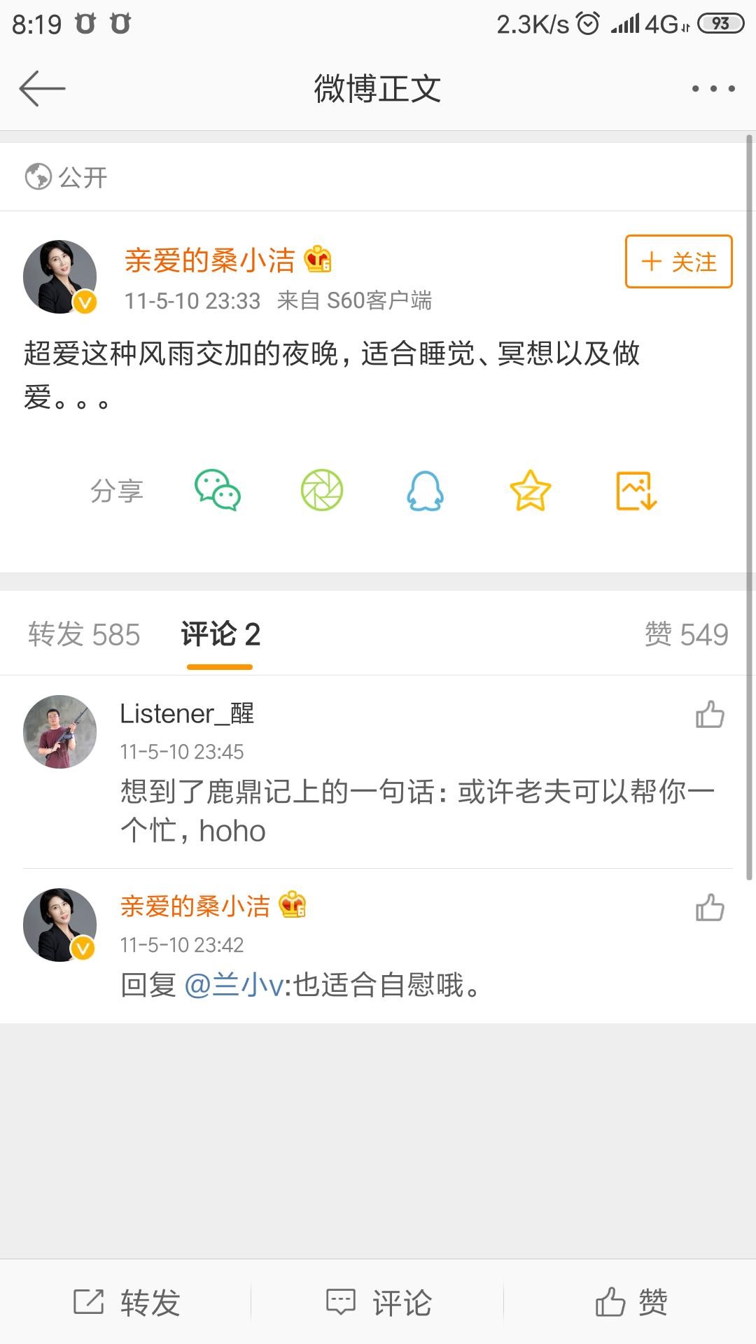 桑小洁微博已清空
