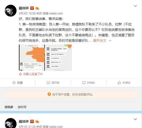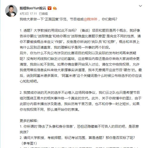 鲍橒微博正面回应截图