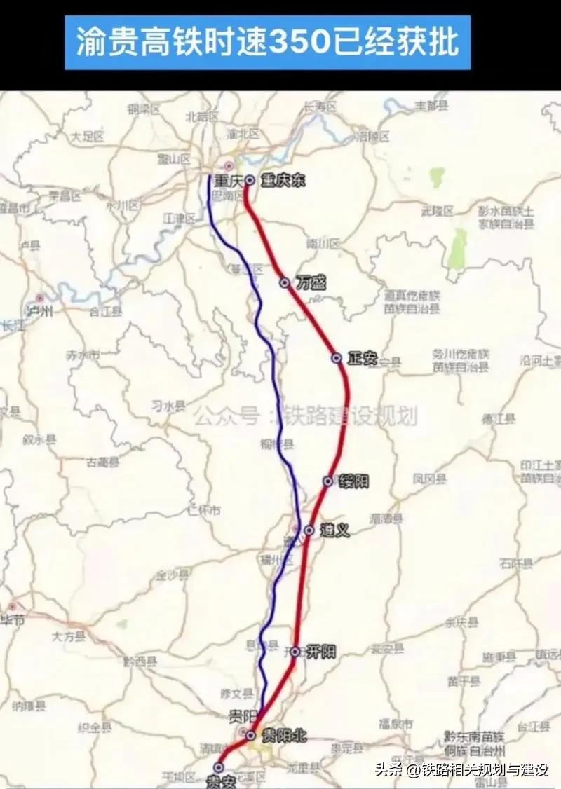 早在2018年4月,渝黔两省市就签署合作框架协议确定拟建渝贵高铁,2019年进行了前期工作推进专题座谈会等相关工作,2021年预可行性研究通过内部评审,且国家已初步同意将其纳入国家铁路“十四五”发展规划实施,2024年国铁集团发布了重庆至贵阳高速铁路的勘察设计招标公告,意味着该项目在国家层面正式启动前期工作 。线路走向有东线、中线、西线等方案,目前根据重庆方面以及遵义的相关规划,走东线基本确定 。