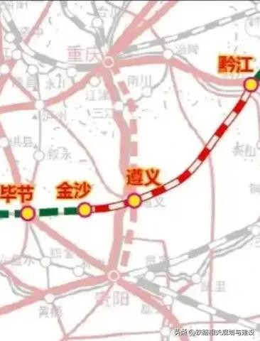 毕黔铁路,毕黔铁路是连接贵州省和重庆市的重要铁路干线,线路起点位于渝怀铁路的龙池站,途经德江县、遵义枢纽、金沙县等地,最终到达毕节,正线全长445.812公里,其中贵州省境内长度为398.796公里,重庆市境内长度为47.016公里,设计时速160公里,定位为客货兼顾的区域铁路干线。沿线设龙池、德江、遵义、金沙、毕节5座客运车站。