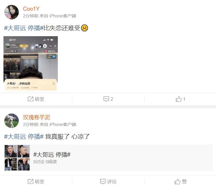 这样的评论流露出对大哥远突然停播的无奈和失望。大家都对停播的原因一头雾水,希望能够得到解答。