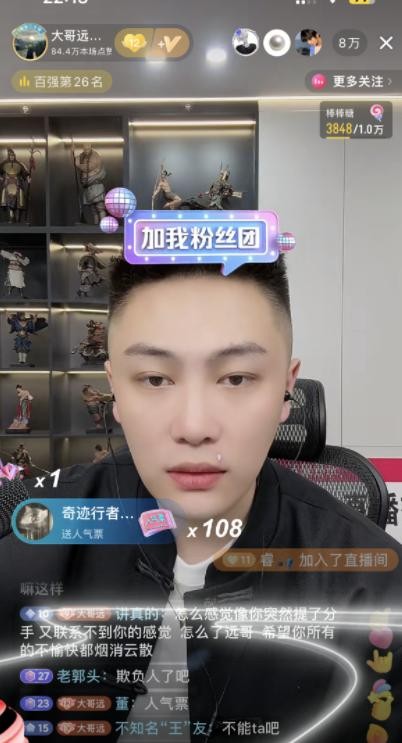 大哥远停播的消息让人们大感意外,有人调侃道:“大哥远不是,谁告诉告诉我咋的了?因为啥啊,我刚进来就听无限期停播,再无北镜之王了。”