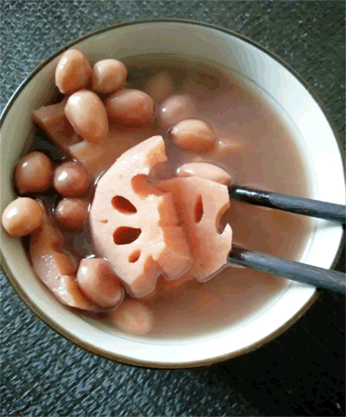 功效:花生外表有一层红色的包衣,是有助于气血的恢复的,并且还含有一定的蛋白质,对通乳有帮助;莲藕可以帮助催乳素更快的分泌,提升奶水的质量。
