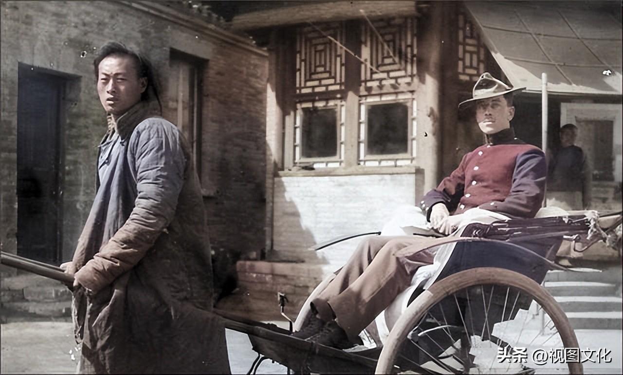 ▲1900年,这个人力车上坐着的是一名美军士兵,当时美军出兵有二千一百人。