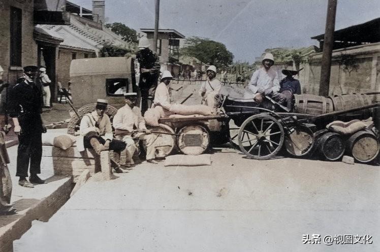 ▲1900年,庚子年,八国联军攻打北京城,英军率先由广渠门破城窜入,联军随后入城,图为联军在城中设置路障。
