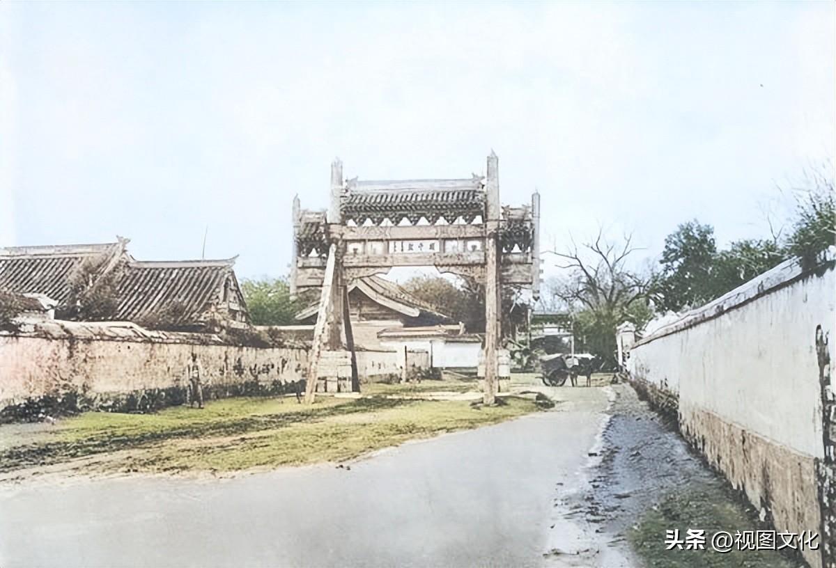 ▲通往夫子庙的一条街道,两座牌楼,路面年久失修,遇水后泥泞不堪,难以通行。