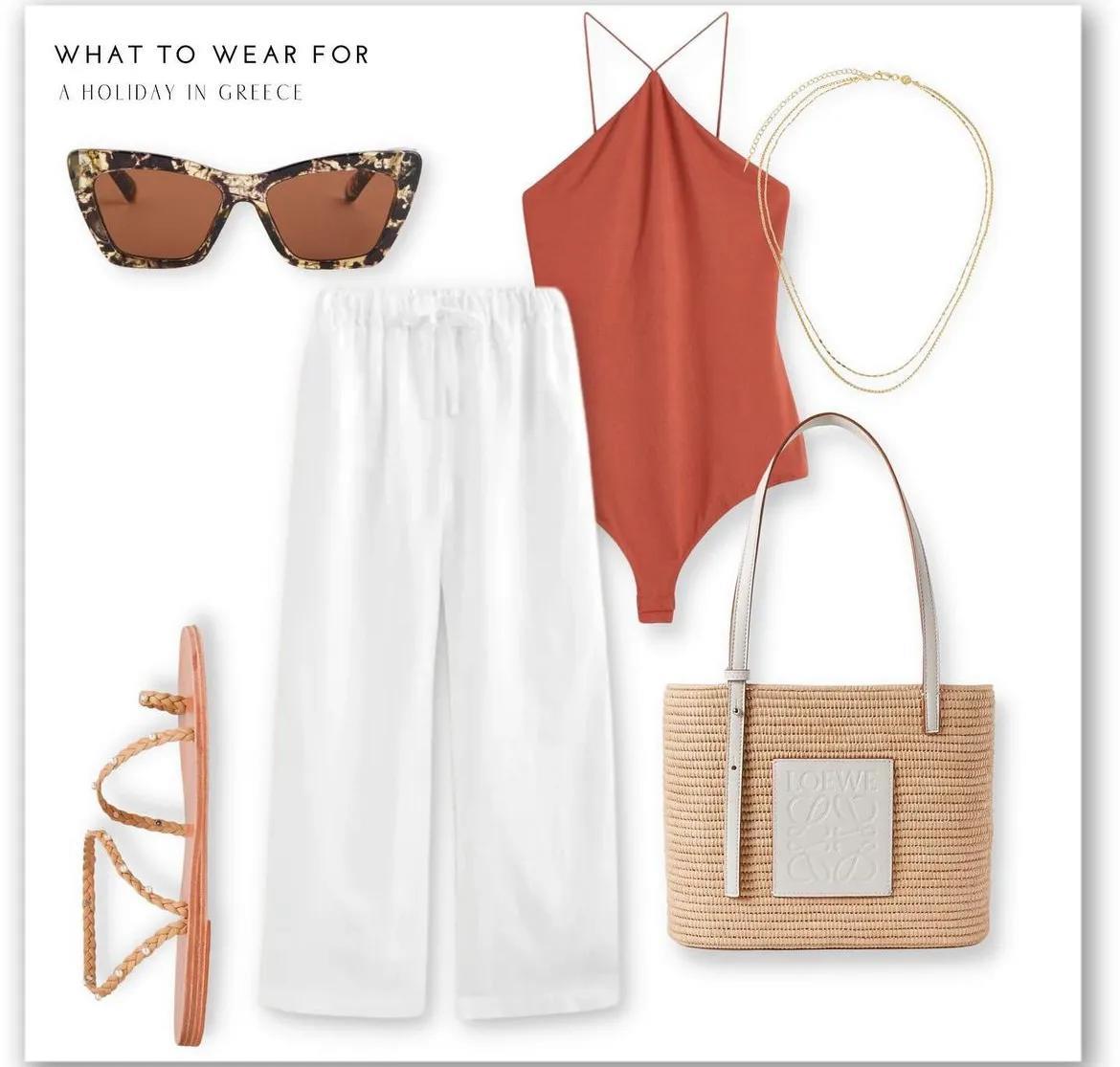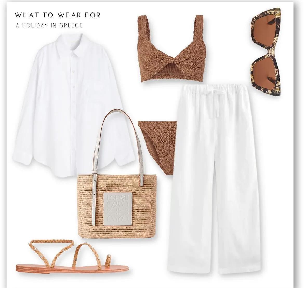 用亚麻面料的阔腿裤,与白衬衫呼应,不仅可以直接穿,营造大方气质,也可以搭在泳衣外面,可以随时享受海水的清凉。