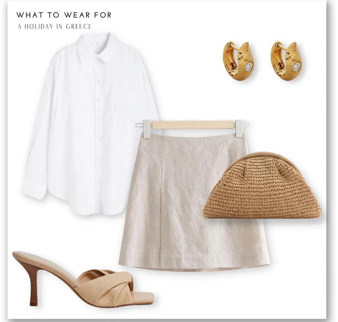 约会或是晚餐时刻,可以用白衬衫搭短裙,再配一双小细跟凉拖,穿出简洁也精致的气质。